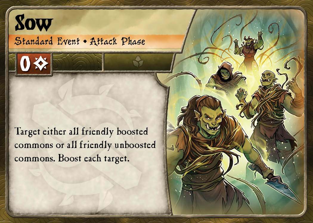 The Swamp Orcs (Water/Earth) focus on creating a farm of boosts to use for powerful effects.